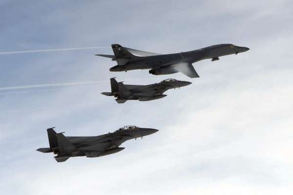 שני מפציצים אמריקניים ביצעו ביום שבת תרגיל אווירי באש חיה מעל שמי דרום קוריאה במהלך שפורש כהפגנת עוצמה על רקע הניסוי בטיל הבין־יבשתי שצפון קוריאה ערכה לראשונה בשבוע שעבר. המפציצים האסטרטגיים מדגם B-1B יצאו למשימתם מהבסיס האווירי האמריקני בגואם והצטרפו למטוסי קרב אמריקניים ודרום־קוריאניים שביחד השתתפו בתרגיל שבו דימו השמדה של טיל בליסטי של האויב.