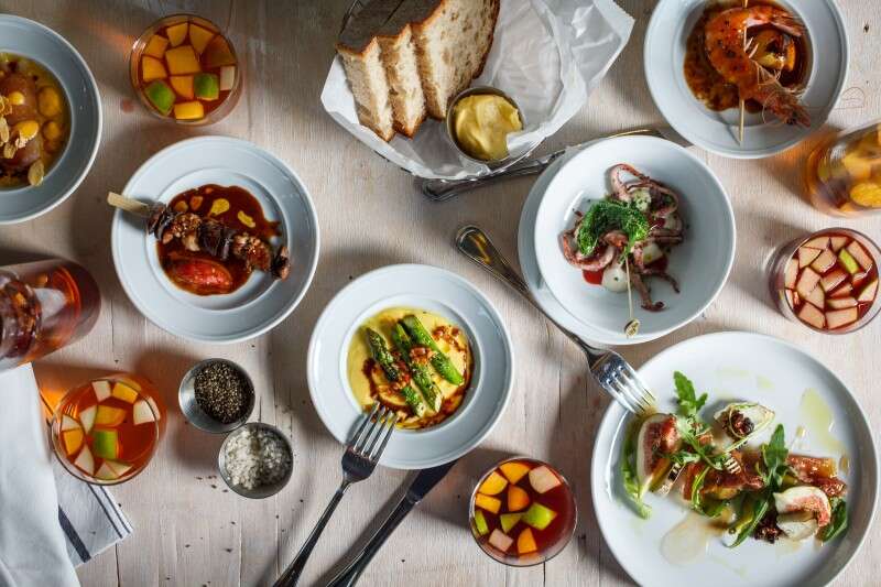 מנות פינצ'וס קטנות על שיפוד או בצלוחית: חמון ותאנה צרובה 30 ₪ ;שרימפס קריסטל צ'אטני משמש 32 ₪; קרודו ים מתחלף עם גספאצ'ו 30 ₪ ;שיפודון ים וירקות (תמנון, קלמארי, או שרימפס) 30 ₪ או שיפודון של דג חרב, אבטיח וזרעי עגבנייה 30 שח ;תרד וגבינת טולום 28 ₪