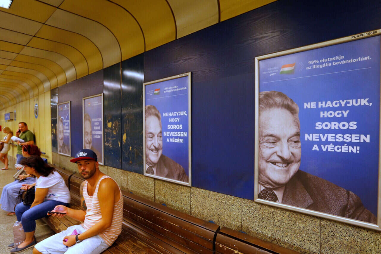השתלשלות האירועים האחרונים בבודפשט: העיר מלאה בשבועות האחרונים במודעות ענק מטעם הממשלה, בהוצאה שנאמדת במאות מיליוני יורו מכלכלת המדינה הצנועה, שבהן מוצג המיליארדר היהודי־אמריקני ממוצא הונגרי ג'ורג' סורוס כאויב המדינה. המודעות מתייחסות לפעילות הפילנתרופית של סורוס נגד מדיניות ההגירה של הונגריה, שנעלה את גבולותיה בפני מהגרים מוסלמים.