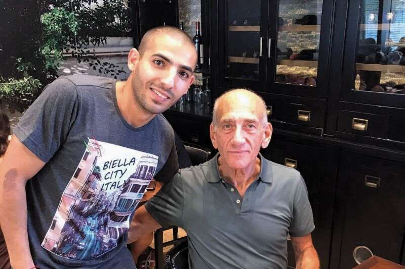 אהוד אולמרט פותח שולחן ב"זויה גריל בר" בנתניה ומתמסר ברצון לצילומים