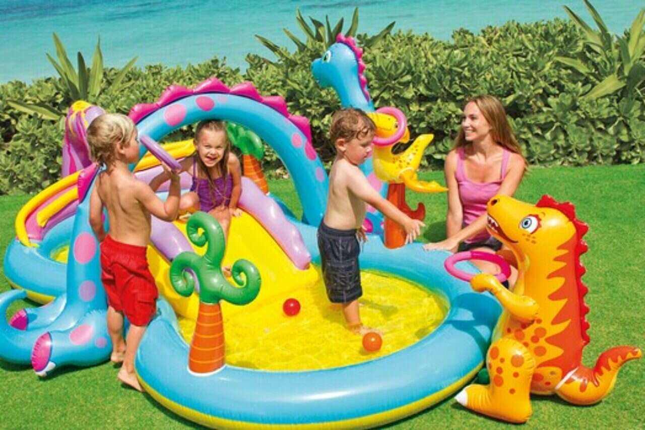 בריכת פעילות דינוזאורים של המותג Intex. מדובר בבריכת פעילות משפחתית גדולה הכוללת מגלשה, משחק לכדורים וקשת משפריצה מים. הדמויות האהובות 'דינוזאורים' מעטרות את הבריכה, כולל מגלשה במרכזה. בנוסף, כוללת הבריכה משחקי כדור והשחלת טבעות. אורך הבריכה כ־3.33 מטר, רוחב כ־2.29 מטר, גובהה כ־1.12 ס"מ ועומקה 15 ס"מ. המחיר: 500 ש'.
