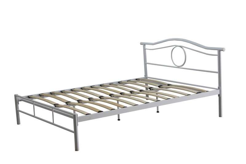 מיטה זוגית ממתכת בצבע לבן להרכבה עצמית, דגם "וינה". המיטה בעלת רצועות עץ לתמיכה. מידות המיטה: גובה 90.5, אורך 190, רוחב 140 ס"מ. להשיג ברשת הום סנטר. המחיר: 595 ש'