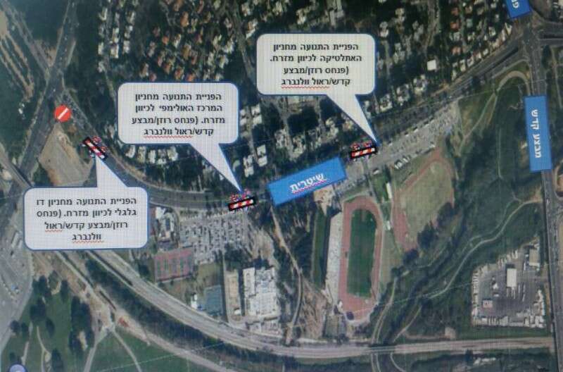 רח' שטרית; לא תתאפשר כניסת כלי רכב מכיוון מבצע קדש. כלי הרכב יופנו מחניוני האתלטיקה לשטרית-מבצע קדש. לא תתאפשר פנייה לכיוון רוקח!