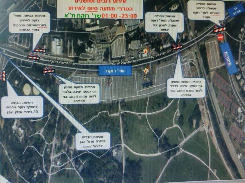 לא תתאפשר פנייה ברח' רוקח ממזרח למערב לכיוון חניון גני יהושע, החל מהשעה 17:00 ועד לסיום האירוע.