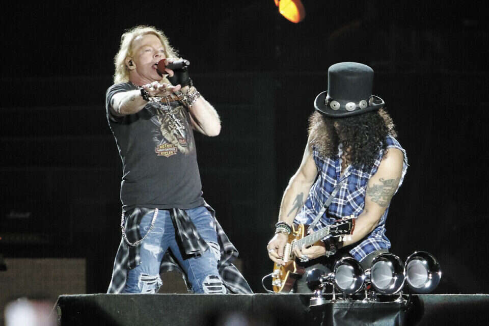אקסל רוז, כבר בן 55, עולה לבמה מפוצץ באנרגיות, כרס נכבדה ובוטוקס בפרצוף שהיה מספיק לשליש מגוש דן. סלאש, הגיטריסט האלמותי כאילו נתקע בזמן עם הסולואים בגיטרה, אבל הסיגריה כבר לא נעוצה בפיו ובקבוקי הוויסקי שפעם היו פזורים לצד הבמה, הוחלפו במים נטורל, אפילו בלי גזים. ככה זה כשאחת הדרישות המרכזיות של הלהקה היו חדר כושר צמוד.
