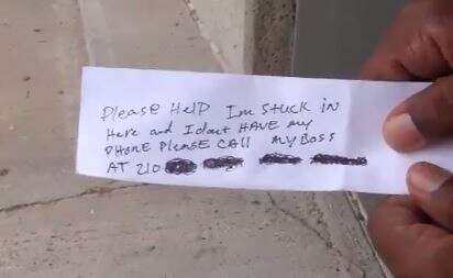 עוברים ושבים שהגיעו ביום רביעי בשבוע שעבר לכספומט בעיר קורפוס כריסטי שבטקסס, ארה"ב, חשבו תחילה שנפלו קרבן לתכנית מתיחות: מתוך המכשיר יצאו פתקים לבנים עליהם נכתב "הצילו! אני תקוע כאן ואין עלי טלפון, אנא צרו קשר עם המעביד שלי". אלא שאיש לא פנה למעבידים של האיש האומלל, ששמו לא פורסם, ששלשל את הפתקים החוצה מהחריץ בו אמורים לצאת פתקי הקבלה של הכספומט.