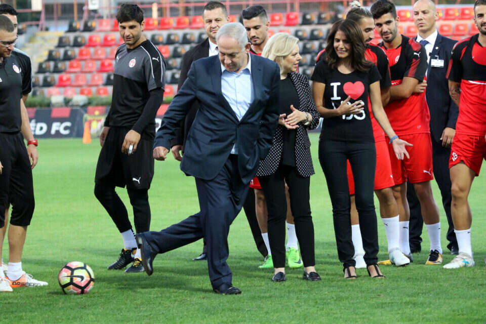 כמו לא מעט פוליטיקאים בהיסטוריה של האנושות, גם ראש ממשלת ישראל בנימין נתניהו מצא מפלט מטרדות השעה בכדי לבוא ולברך מועדון ספורט לפני משחק חשוב. "תודה לראש הממשלה, שלמרות לוח הזמנים הצפוף שלו בא לאחל לנו בהצלחה", אומרת בעלת הפועל ב"ש אלונה ברקת, ונתניהו בועט את הכדור בטכניקה סבירה לשמחת השחקנים.