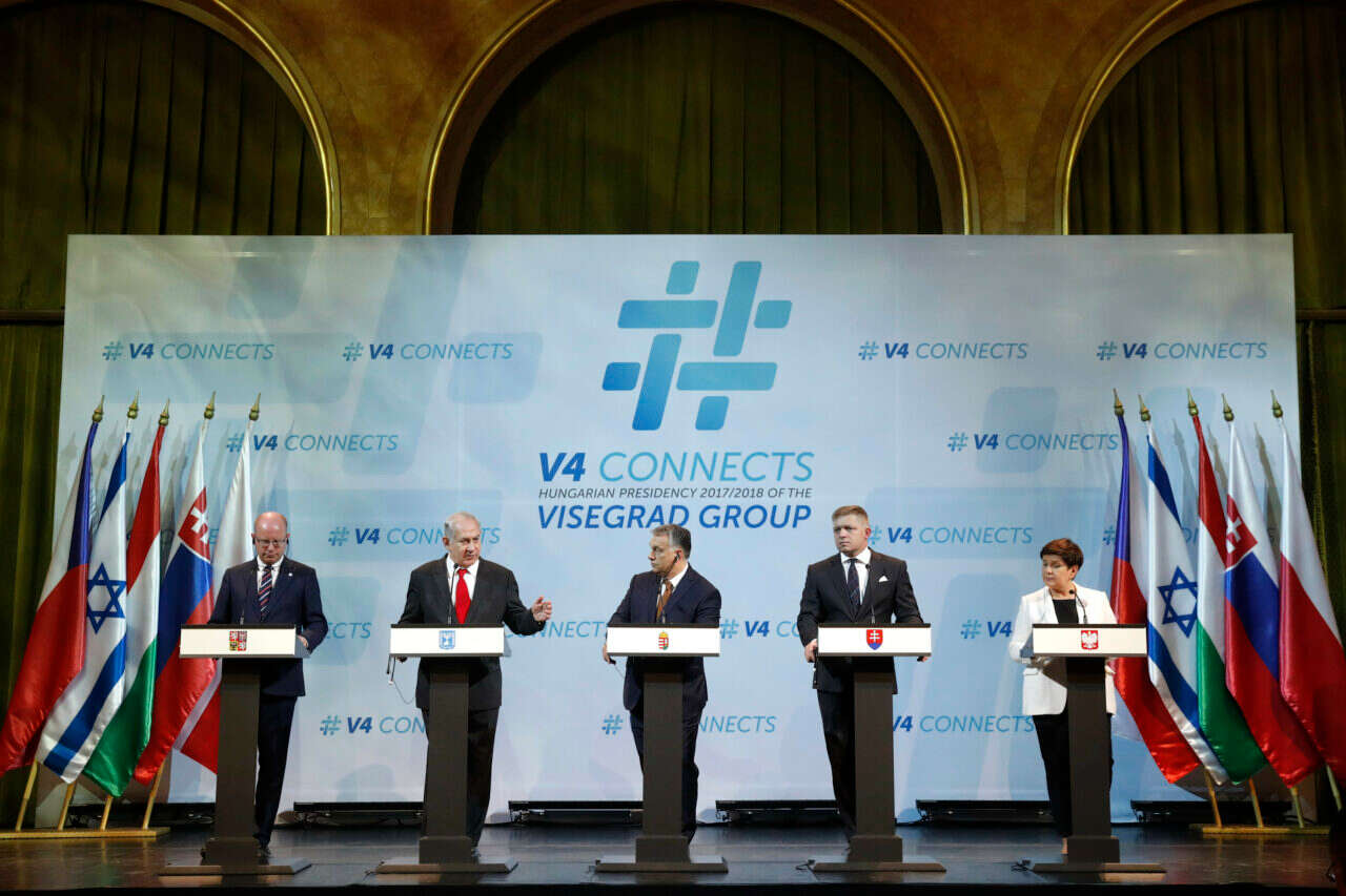 נתניהו סיפר למנהיגי ארבעת המדינות כיצד ישראל התגברה על בעיית המים, בעזרת טכנולוגיה מתקדמת והתפלת מים והבהיר, כי אירופה היא היבשת היחידה שמנותקת משאר העולם בקשר עם ישראל, בגלל ה"טירוף" האירופי, כדבריו, סביב הסוגיה הפלשתינית: "לסין לא אכפת מהנושאים המדיניים. גם לא להודו. ר"מ הודו שביקר לאחרונה בישראל לא ביקר ברמאללה אלא ביקש שניקח אותו למפעל לייצור חלב. רוסיה לא מתעניינת בזה (בסוגיה הפלשתינית). אפריקה ממש לא מתעניינת בזה. אני בכלל לא מדבר על האינטרס שלי, אלא על האינטרס האירופי. חשבו על הטכנולוגיה שמופיעה בכל שדה. לכן אני מציע שבכל פגישה תחשבו איך אתם קודם כל עוזרים לאירופה ומשתפים פעולה עם המדינה בעלת הערכים המשותפים. תפסיקו לתקוף את ישראל. פעלו כפי שסין, הודו ומדינות אפריקה פועלות. אין היגיון כאן: אירופה לא מתחברת לטכנולוגיה שלנו, בגלל טירוף לנושא הפלשתיני. ביטחון אירופה ועתידה, שתי הדאגות הללו. אנחנו חלק מהציוויליזציה האירופאית".