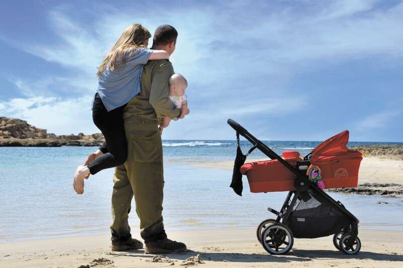 רס"ן ליאור עם רותם ונעמי, ספטמבר 2015. "בבית החולים הוא קיבל בלונים להחלמה, ואני קיבלתי בלונים ללידה"
