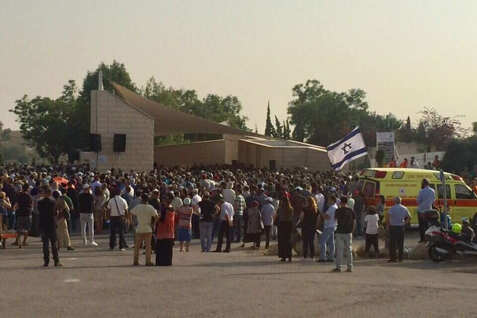 מחוץ לבית העלמין התגודדו רבים מאנשי המועצה האזורית בנימין ובכלל מרחבי יהודה ושומרון, כמו גם אזרחים רבים שהגיעו מרחבי הארץ. חלקם ציינו כי הדרישה העיקרית כעת היא לתת תשובה "לבני הבליעל שמנסים לפגוע בנו והתשובה היא להמשיך ולחזק את הבנייה ברחבי יהודה ושומרון".