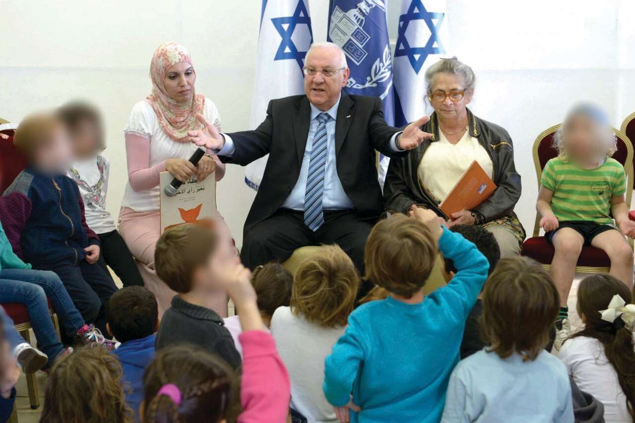 צילום: בית הנשיא // כינון "יחד" אזרחי שאינו קשור בנרטיב הלאומי. הנשיא ריבלין בביקור בבית הספר הדו־לשוני בירושלים