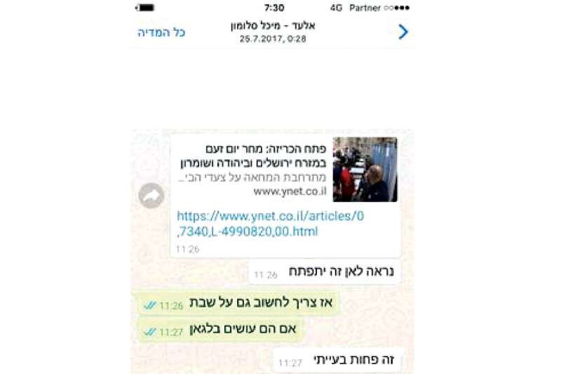 ההודעה האחרונה. על רקע המתיחות הביטחונית, ביום הירצחו שלח אלעד ז"ל הודעה למיכל: "נראה לאן זה יתפתח"