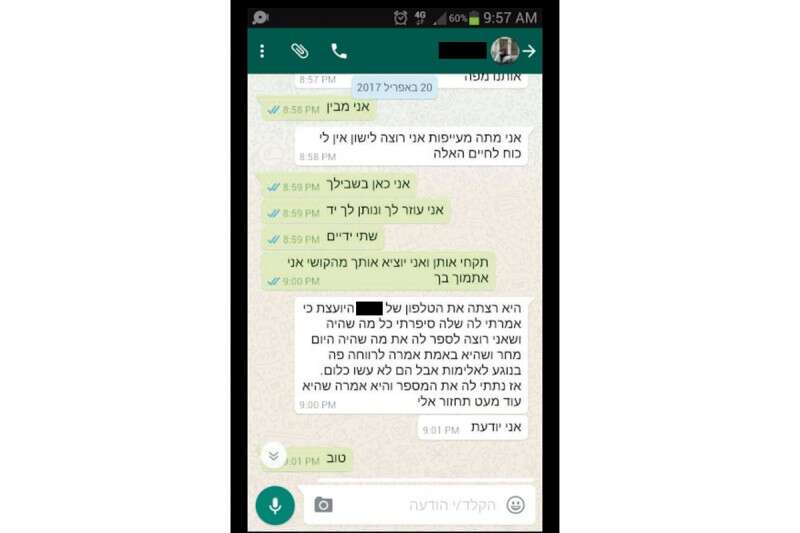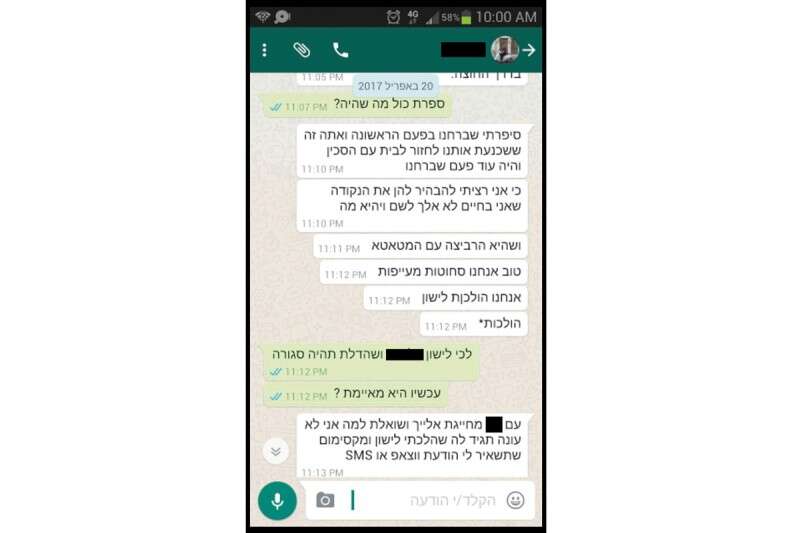 "פעם, אחרי המפגש עם הפסיכולוג שבית המשפט מינה, היא התעצבנה עליהם שהם פתחו בפניו את כל נושא האלימות, ובדרך הביתה אמרה להם לצאת מהאוטו. זה היה ליד מוזיאון האסלאם, בתחילת טרור הסכינים ב־2016. הפסיכולוג סיפר לי שראה את הילדים רצים על הכביש בצורה מסוכנת, אבל לא עצר לבדוק מה קרה. הם רצו כמה קילומטרים עד התחנה המרכזית בירושלים, ומשם לקחו אוטובוס ליישוב.