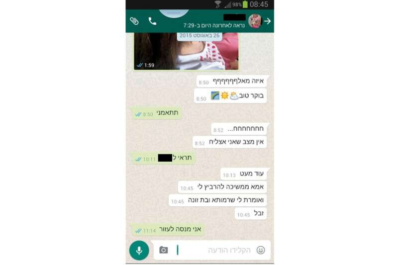 ימים אחדים אחרי הפגישה עם שי צלצלה אלי בתו, שירה. "לקחתי את המספר שלך מאבא שלי", היא אמרה בקול רועד. "אני חייבת שתעזרי לנו. אין לנו כבר למי לפנות. אמא שלי כל הזמן מרביצה לנו ומקללת אותנו".