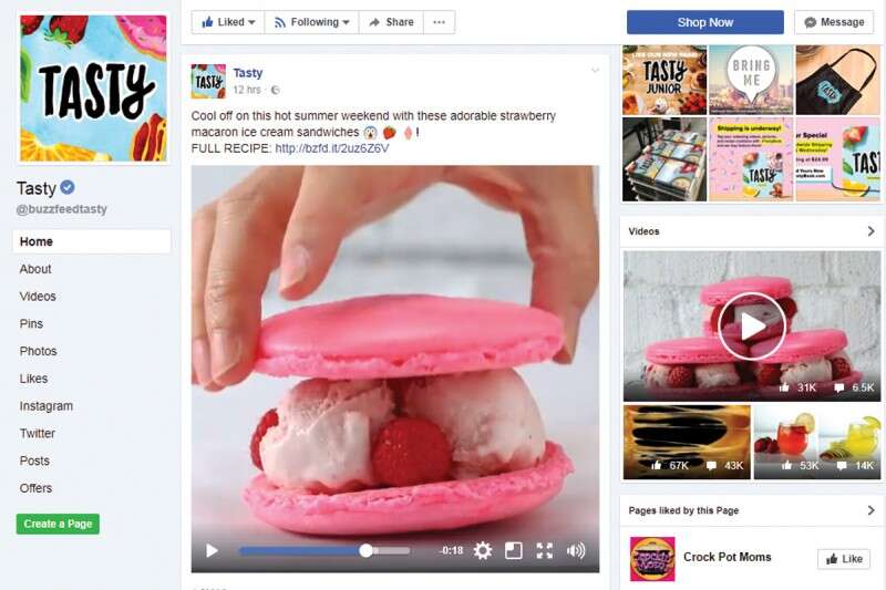 העמוד המוביל בפייסבוק, שכרגע יש לו 86 מיליון עוקבים, הוא Tasty מבית היוצר של ענקית התוכן BuzzFeed. ל"טייסטי" יש גם אפליקציות בנות מסוגים שונים: טייסטי בחלוקה למדינות, שם מתכוני האוכל מותאמים לאוכל המקומי, והכיתוביות המתארות את המצרכים ואת אופן ההכנה מופיעות בשפת המדינה; Tasty junior, המביא מתכונים פשוטים לבישול ולאפייה לילדים, על ידי ילדים (3.8 מיליון עוקבים); Tasty Vegeterian, המותאמת לצמחונים, ולה 4 מיליון עוקבים; ו־Proper Tasty עם 18 מיליון עוקבים.