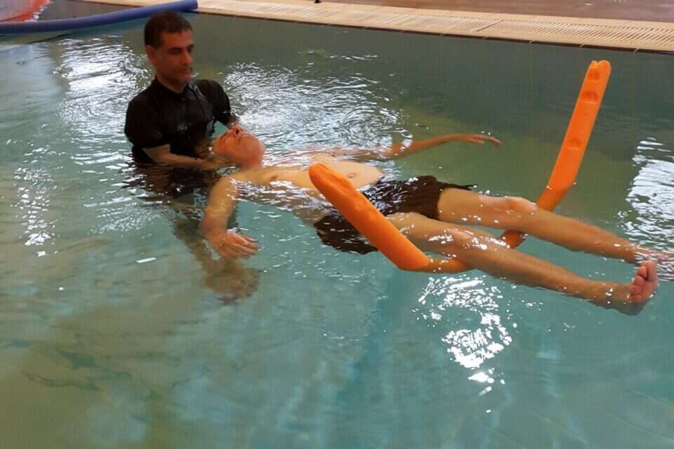 שיקום המטופל באמצעות פעילות מותאמת של מרכיבי ההסתגלות למים (כולל – מעברים, ציפה, שליטה על הנשימה במים, וסגנונות שונים של התקדמות במים) במטרה להכין את המטופל לעצמאות.