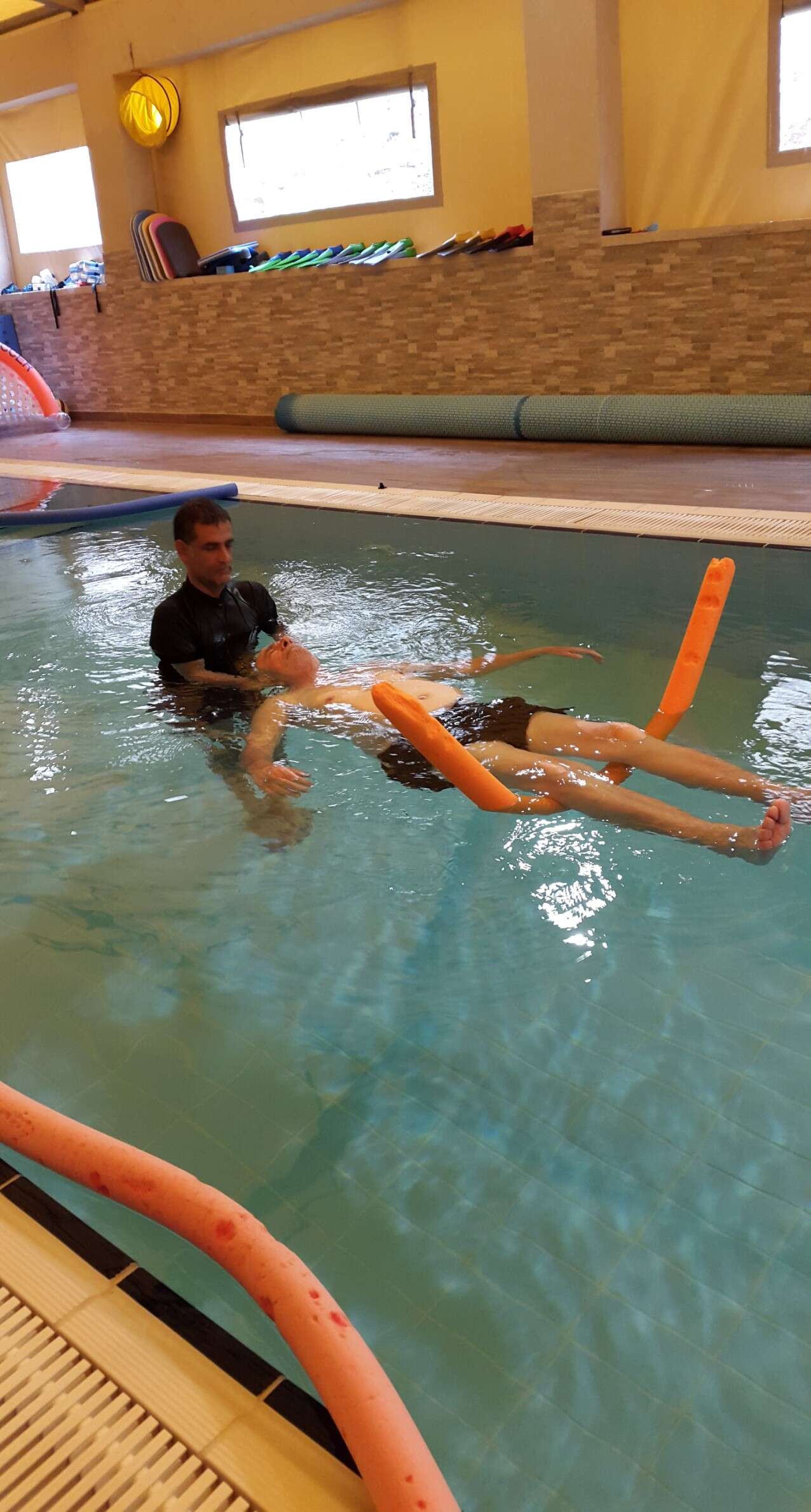 הידרותרפיה ושחיה טיפולית : מבוצעת בבריכה טיפולית, נעזרת בטכניקות של תרגילי תנועה ופעילות גופנית מותאמת אקטיבית ואו פאסיבית, שמתבצעת בבריכה טיפולית .ובתנועות שחייה במים. כאמצעי טיפול ושיקום התנועה ושיווי המשקל.