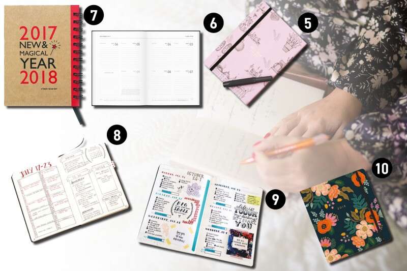 5. יומן של Rifle Paper ויומן מעוצב של חברת O-Check בשיתוף עם Yooletta, מסריק 19 ת"א ובאתר, 149 ש' ו־94 ש' בהתאמה 6. יומן שבועי מעוצב עם מקומות ייעודיים לשרבוט, PUDISH, להשיג באתר ודרך עמוד הפייסבוק, 95 ש' 7. יומן שבועי של דורנת, להשיג באתר ובחנויות המובחרות, 49.90 ש' 8, 9, 10. התחביב החדש של מאות בלוגריות: דוגמאות ל־Bullet Journal מתוך הרשת