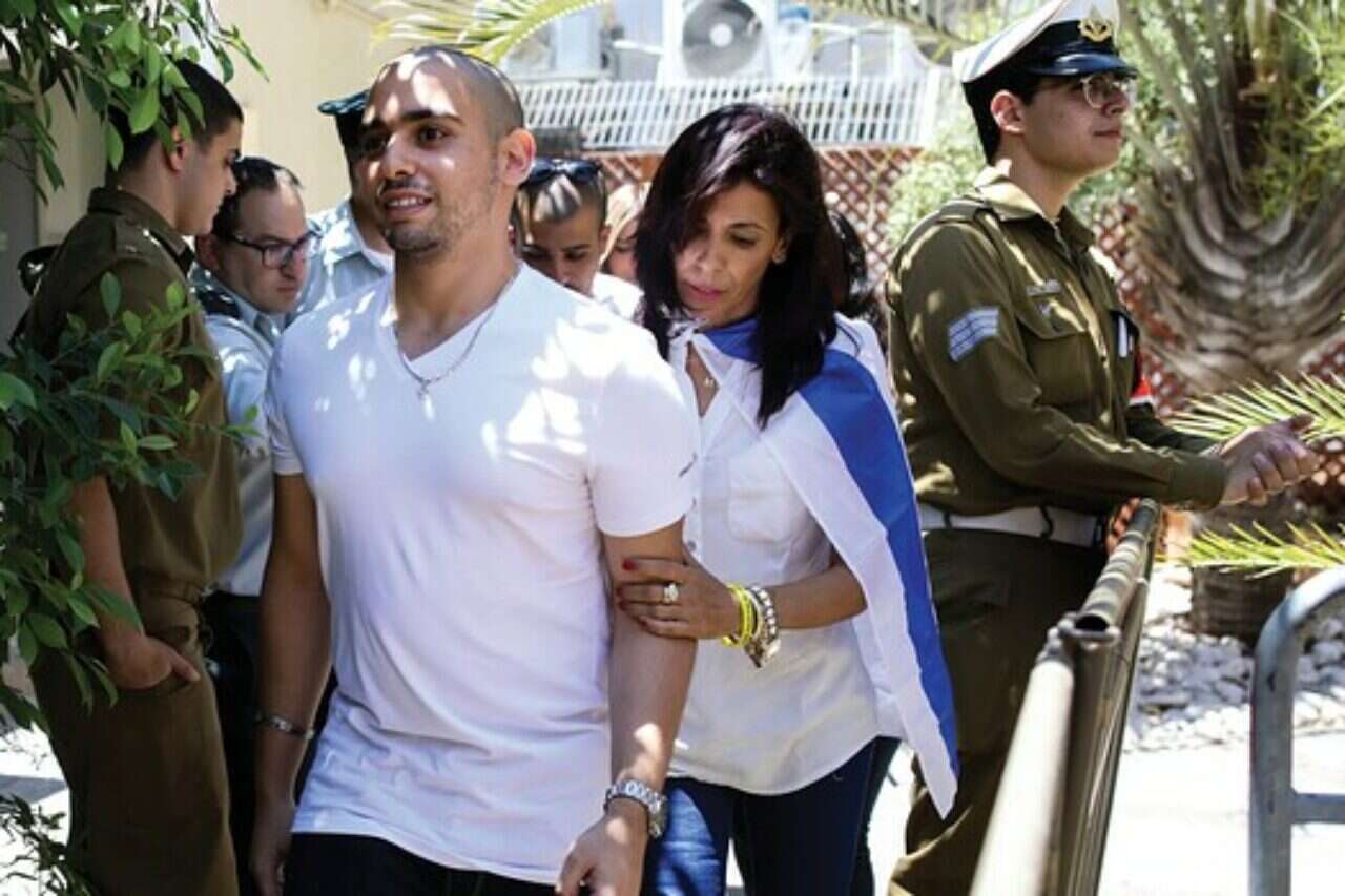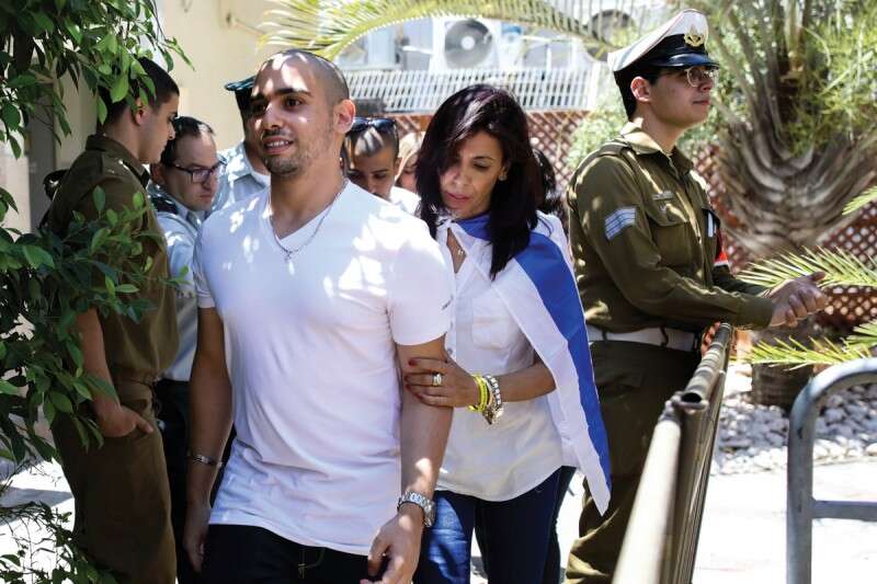 פרשה שהיתה טריגר פוליטי. אלאור אזריה ואמו, השבוע ביציאה מבית הדין הצבאי לערעורים // צילום: אי.פי