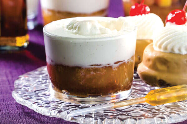 מזלפים את הקצפת לכוסות צרות וגבוהות או לכוס של צ'ייסר, ומניחים לצד כוס הקינוח.