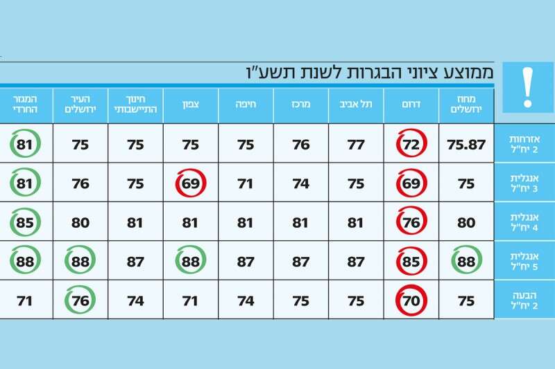 שלושה שבועות לפני החזרה ללימודים חושף "ישראל היום" את ציוני הבגרות הממוצעים של תלמידי ישראל בשבעת מקצועות החובה - שלרוב נשארים לא ידועים לציבור. הנתונים, המבוססים על ציוני הבגרויות הסופיים משנת תשע"ו, מספקים הצצה להישגי התלמידים בהשוואה לאזורים השונים בארץ וחושפים את הפערים בין הפריפריה למרכז.