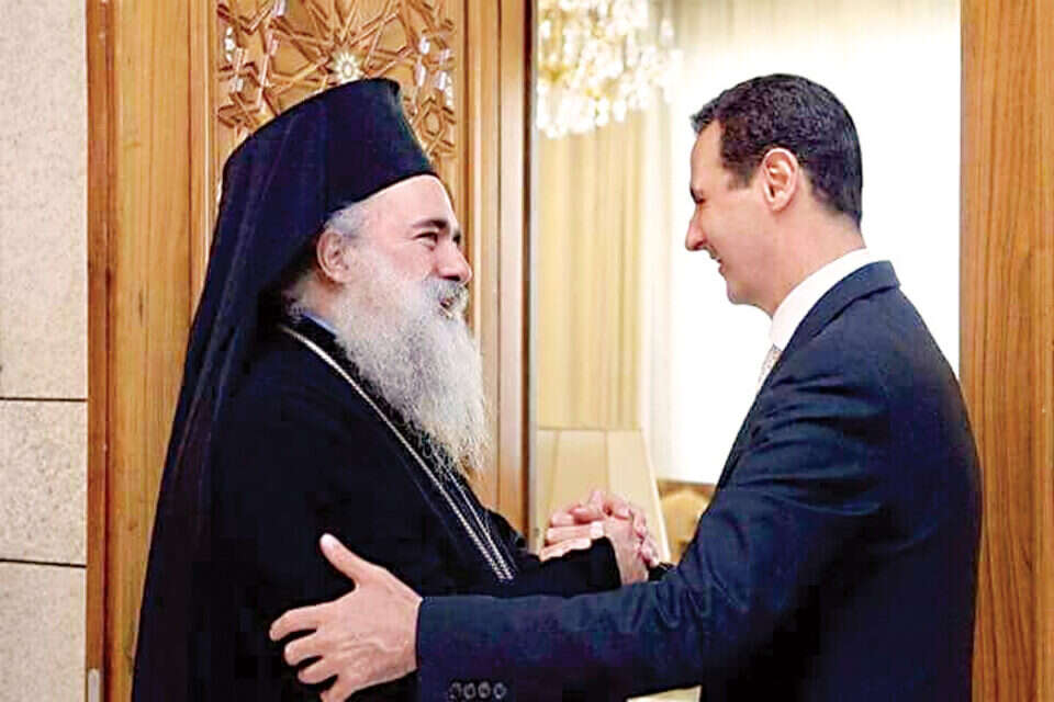 מקומם: ראש הכנסייה היוונית אורתודוקסית בירושלים נפגש עם אסד