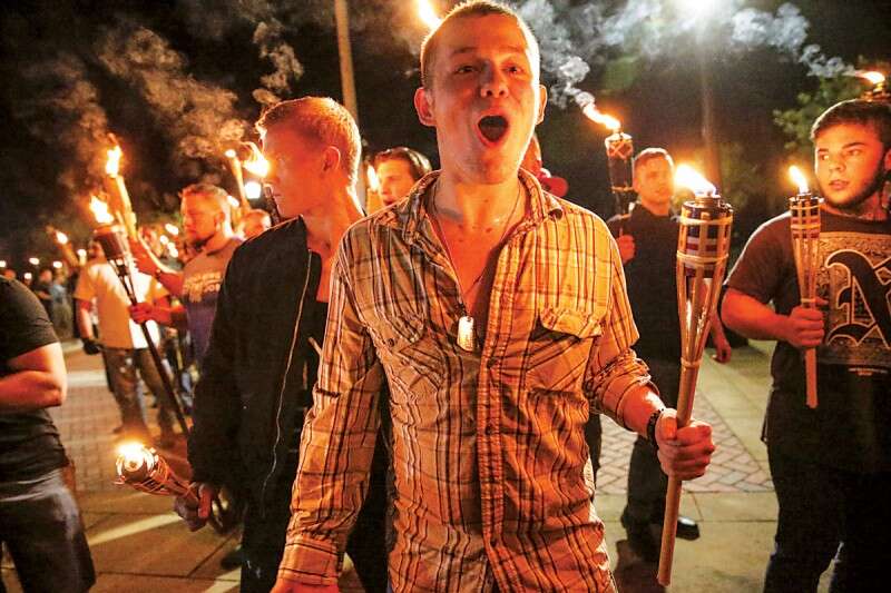 תמונות שמעלות זיכרון בלהות. ניאו־נאצים במצעד לפידים לילי בווירג'יניה // צילום: אי.פי