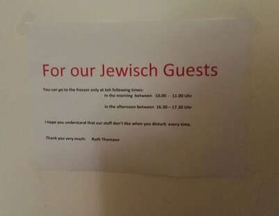 עוד מסרו התיירים היהודים כי קיים שלט נוסף במטבחון מלון הדירות בו מתבקשים האורחים היהודים שלא להוציא אוכל מהמקרר אלא בשעות מסוימות.