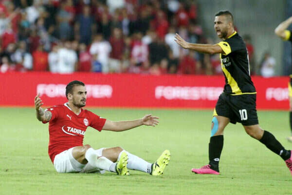 דקה 10: עבירה קשה של ויקי כחלון על מיכאל אוחנה, אך אדלר שלף לעברו רק את הכרטיס הצהוב