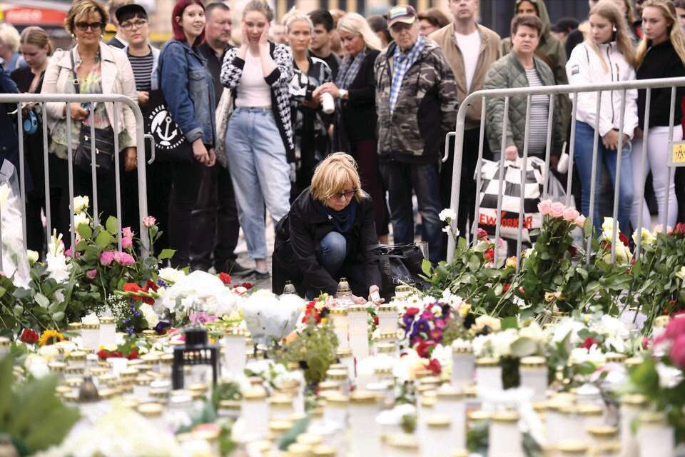 07.04.2017, שטוקהולם: מחבל דרס למוות חמישה בני אדם ופצע 14. הוא נתפס על ידי השוטרים זמן מה לאחר שנמלט.