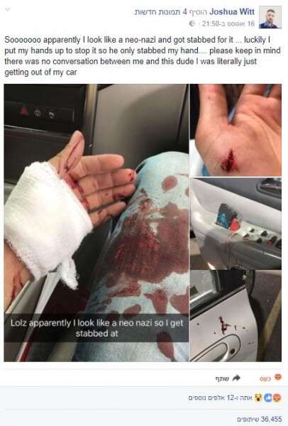 ויט סיפר שהוא נכנס למגרש חניה ופתח את דלת המכונית שלו. "כל מה ששמעתי לפני הדקירה הוא 'האם אתה אחד מהניאו נאצים?'", מפי נער שהניף סכין לכיוון דלת המכונית שלו.