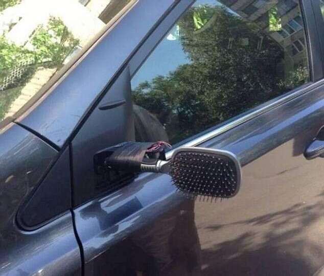 העיפו לכם את המראת צד בחנייה? חסכו מאות שקלים עם מברשת שיער עם מראה // צילום: imgur