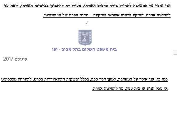 החלטת השופט. "על המשיבה לא להתקרב ולא להתבונן בכרטיס אשראי"