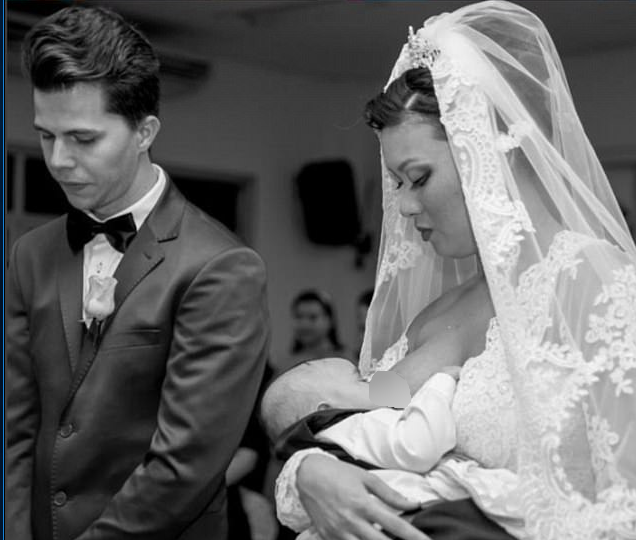 דניאל קאטסו (24) מברזיל החליטה לנקוט בצעד קיצוני במטרה להראות את תמיכתה בהנקה בציבור, והניקה את התינוק שלה בזמן שנישאה לבחיר לבה קייל ריוס בן ה-26.