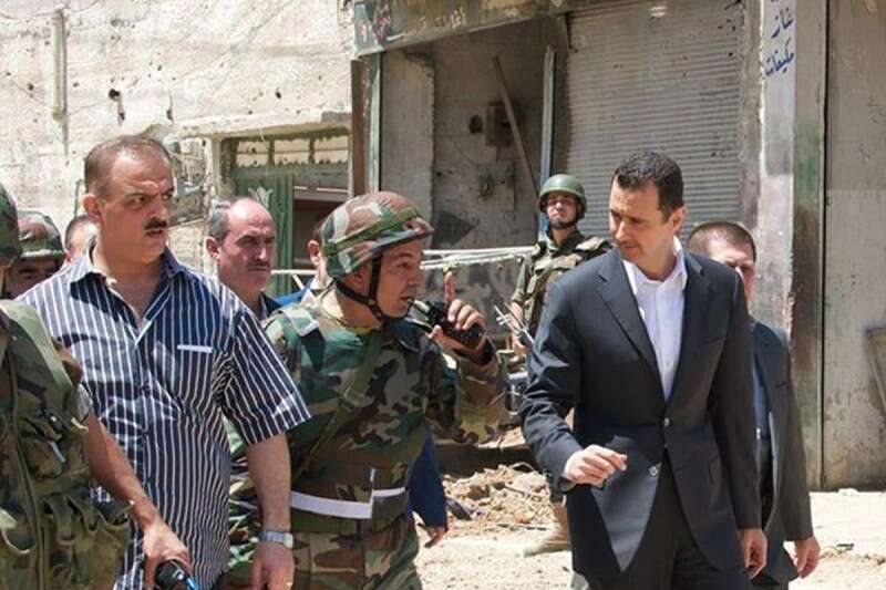 אסד עם קצין בשטח. נהנה מהתמקדות האמריקנים בדאעש // צילום: רויטרס