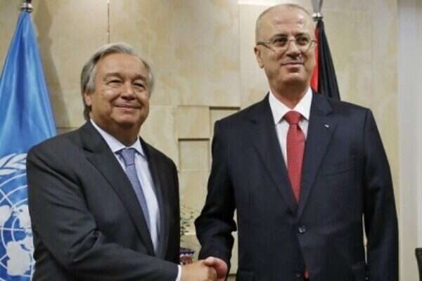 In meeting with Palestinian PM, Antonio Guterres expresses the "total commitment of the United Nations to do everything for a two-state solution to materialize" • U.N. envoy offers Guterres aerial tour to better illustrate Israel's security concerns.