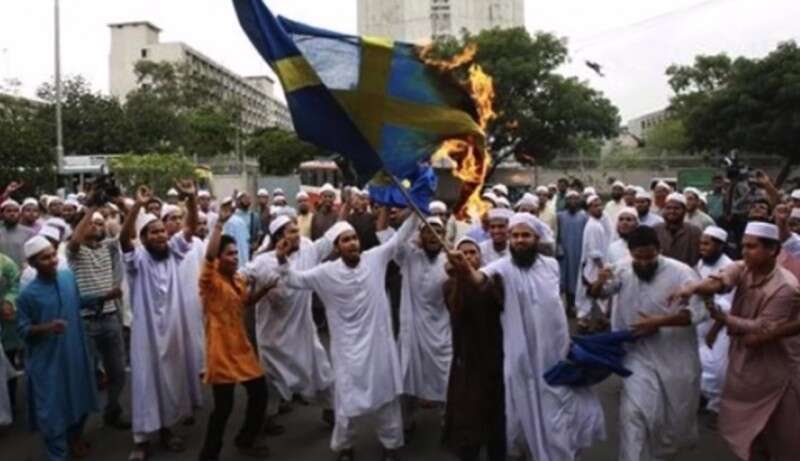 מהגרים שורפים את דגל שבדיה // צילום: מתוך יוטיוב