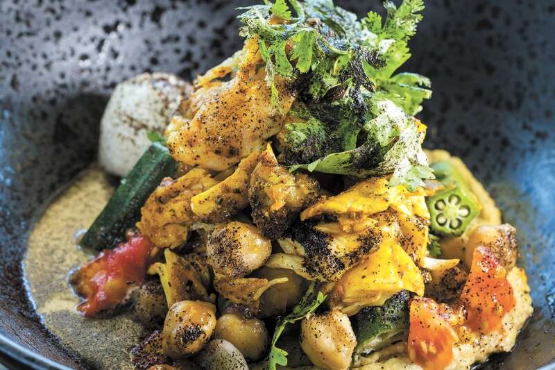 השווארמה מקבלת כאן הסבה לנתחי לוקוס צלויים. החוויאג' מחליף את העמבה, בצל צלוי מעניק את המתיקות והכל עטוף בקרם חומוס עדין.