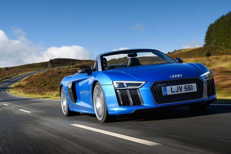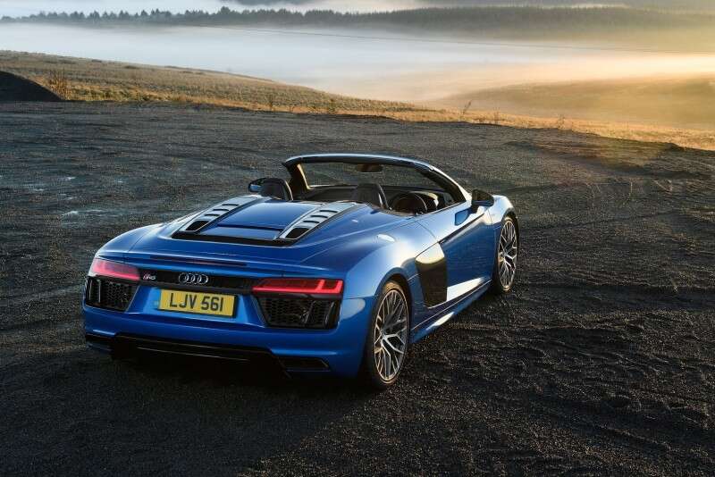 ל-R8 מנוע V10 אטמוספרי בנפח 5.2 ל' המפיק 540 כ"ס ו-59.6 קג"מ. תיבה רובוטית כפולת-מצמדים מעבירה את הכוח לארבעת הגלגלים. הביצועים מצוינים עם 3.6 שניות בתאוצה ל-100 קמ"ש (0.1 שניות פחות מהקופה) ומהירות מרבית של 317 קמ"ש (5 קמ"ש פחות מהקופה).