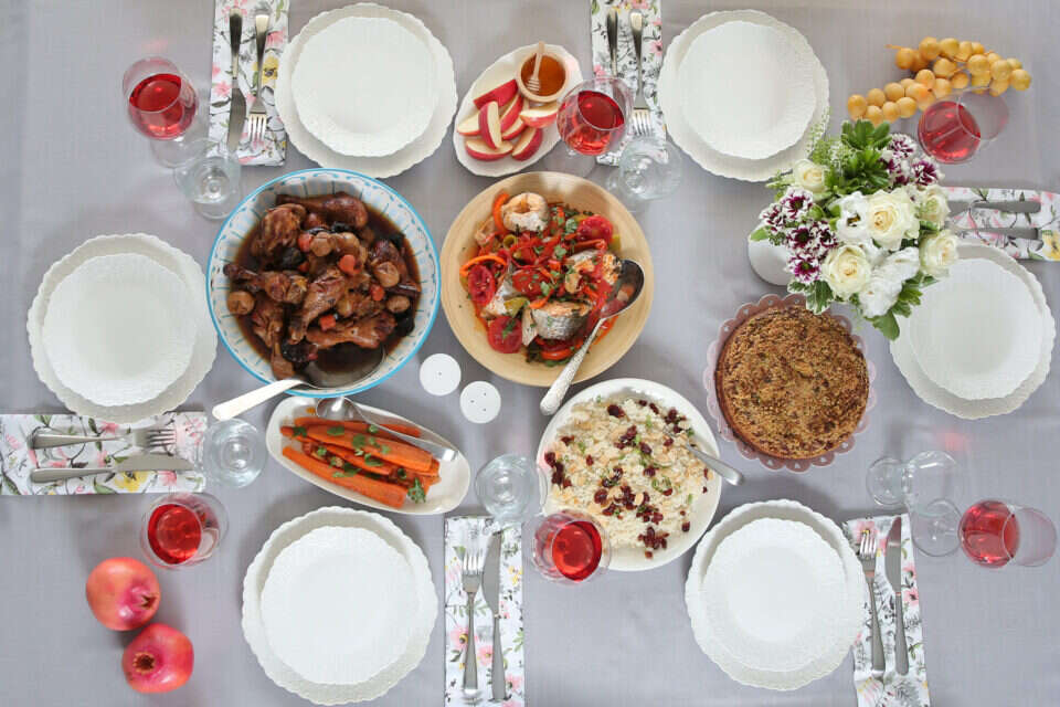 לקראת ראש השנה ערכנו שלושה שולחנות שונים ומגוונים, שלושתם חגיגיים וטעימים להפליא וכל אחד מהם מתומחר באופן שונה - אחד בעלות של עד 50 שקלים לסועד, שני עד 75 שקלים לסועד ושלישי עד 120 שקלים לסועד. אפשר, כמובן, לערבב בין המנות השונות ולהרכיב תפריט מגוון אחר, תוך שמירה על התקציב.