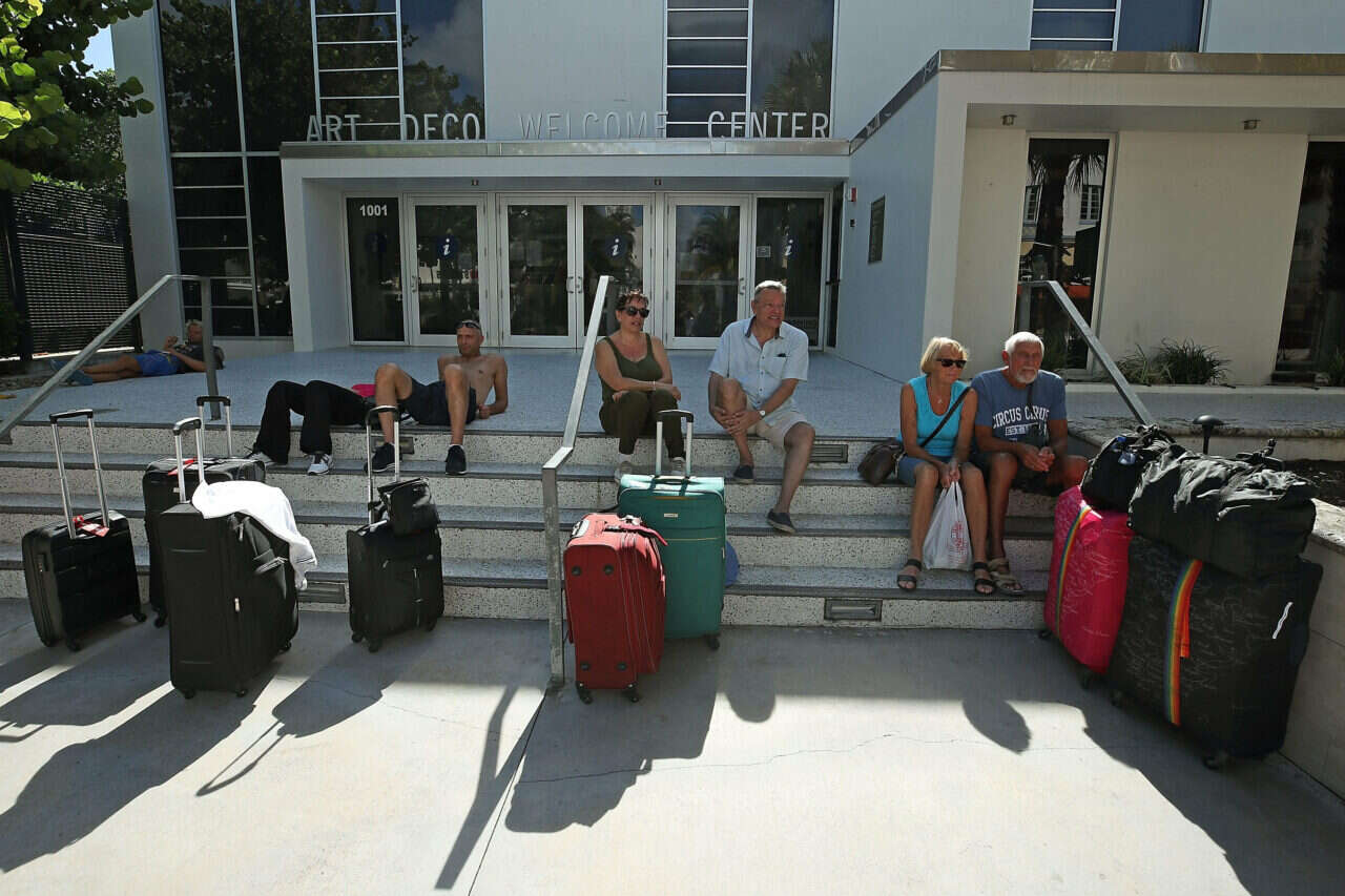 תיירים ותושבים מתפנים ממיאמי ביץ', פלורידה // צילום: אי.אף.פי // תיירים ותושבים מתפנים ממיאמי ביץ', פלורידה // צילום: אי.אף.פי