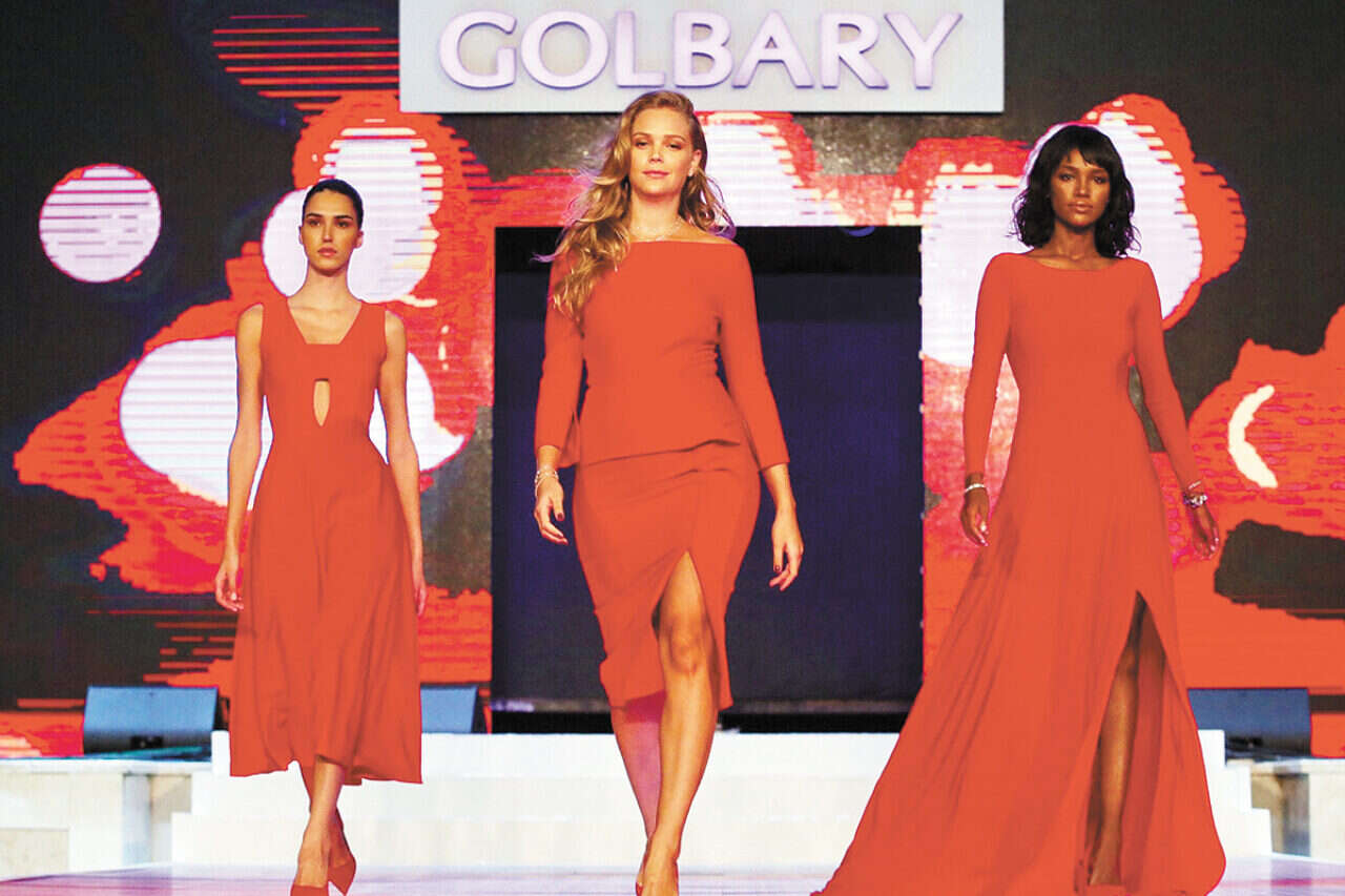 בחודש החמישי להריונה אסתי גינזבורג ממשיכה לעבוד ואמש היא צעדה על המסלול באירוע השנתי של גולברי. לצידה על המסלול צעדו גם טיטי איינאו ודוגמניות נוספות ועל החלק האמנותי הופקד אייל גולן.