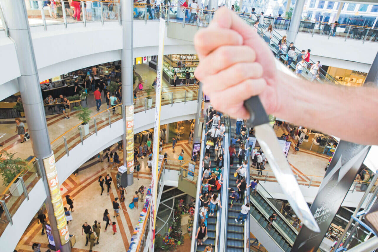 אפילו בקניון עזריאלי בתל אביב, אחד הגדולים והסואנים בארץ, עם עשרות אלפי מבקרים ביום, לא נתקלתי בשום בעיה לעבור בקלות את מעגל האבטחה. לקניון המוקף בעשרות אנשי ביטחון, לא כולם חמושים, הגעתי ברכב בצהרי 14 באוגוסט. מצאתי בו שניים־שלושה שומרים בשערים הראשיים, וגם ניידת משטרה שחנתה בכביש הגישה אל המגדלים. נכנסנו לחניון דרך הכניסה שברחוב מוזס. השומר במחסום ביקש ממני לפתוח את תא המטען. הוא העיף מבט מהיר וסגר מייד את המכסה, בלי להתעניין כלל בתיק עם הסכין שבמושב האחורי.