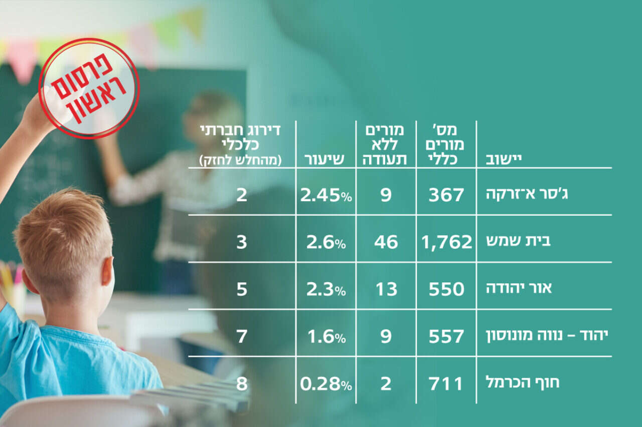 במערכת החינוך מועסקים כ־3,000 מורים ללא תעודת הוראה - מספר נמוך ביחס למספר עובדי ההוראה בארץ, העומד על כ־180 אלף. אלא שמנתוני משרד החינוך עולה כי מספר המורים ללא תעודה, המלמדים ברשויות מקומיות שדירוגן החברתי־כלכלי נמוך, גדול יותר ממספרם באלו המדורגות גבוה מהן. כלומר, יותר מורים לא מקצועיים מועסקים בפריפריה החברתית והגיאוגרפית.