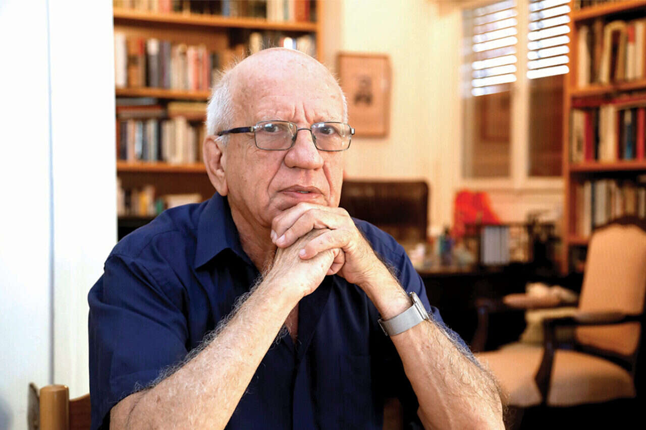"יש לי רוטינת כתיבה טובה - אני מרים את הראש וכבר צהריים". מירון בביתו בתל אביב// צילום: גדעון מרקוביץ