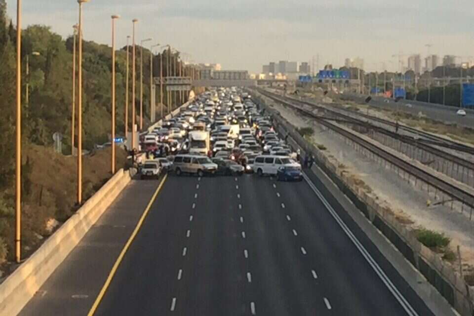 רק לאחר שעתיים של חסימה מוחלטת, על ידי אנשי ארגון "הנכים הופכים לפנתרים", נפתחו שני נתיבים מתוך ארבעה, במחלף קק''ל לכיוון דרום.