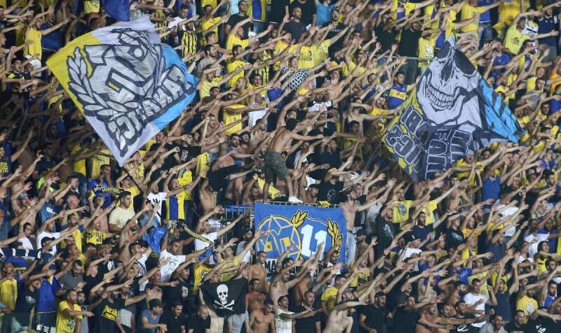 הקהל של מכבי ת"א. תגרה התפתחה בין שתי מחנות האוהדים // צילום: אלן שיבר