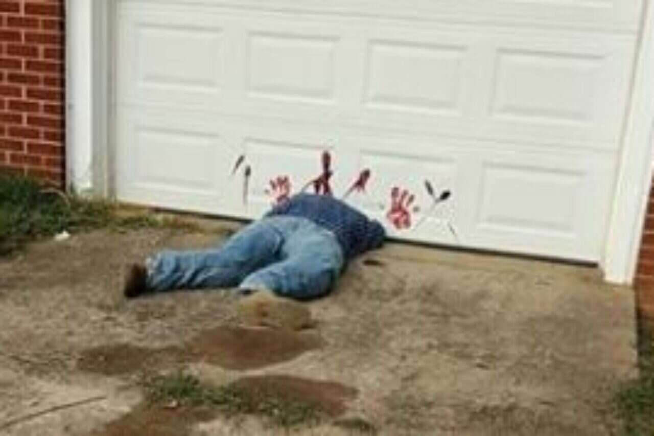 העוברים והשבים הבחינו במה שנראה כמו אדם שראשו נערף על ידי דלת המוסך של ביתו בגרינוויל. המחזה נראה כל כך אמיתי עד שהשכן שלו ג'וני רידל דיווח למשטרה המקומית על מה שנראה לו כגופה.