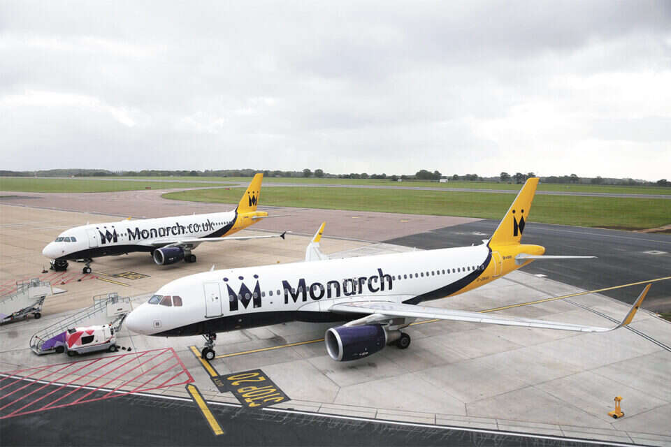 החברה, שנוסדה לפני 49 שנה, הפעילה לנתב"ג ארבע טיסות בכל שבוע - שתיים ללוטון בלונדון ושתיים למנצ'סטר. מחודש נובמבר היא היתה אמורה להתחיל בטיסה שבועית לנמל עובדה. בשעה 04:00 לפנות בוקר פרסמה רשות התעופה הבריטית CAA הודעה דחופה, שבה קראה לנוסעי מונרך לא להגיע לנמלי התעופה.