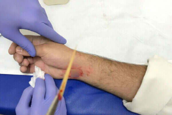 בבדיקות שביצע הצוות הרפואי נמצא כי טווח התנועה באצבעות ושורש כך היד תקין, גם התחושה והדופק הראו סימנים נורמטיביים. רופא 'טרם' ביצע את תהליך הוצאת הגוף הזר תחת הרדמה מקומית, ולאחר שלא היו אירועים מיוחדים שוחרר האיש עם טיפול אנטיביוטי.